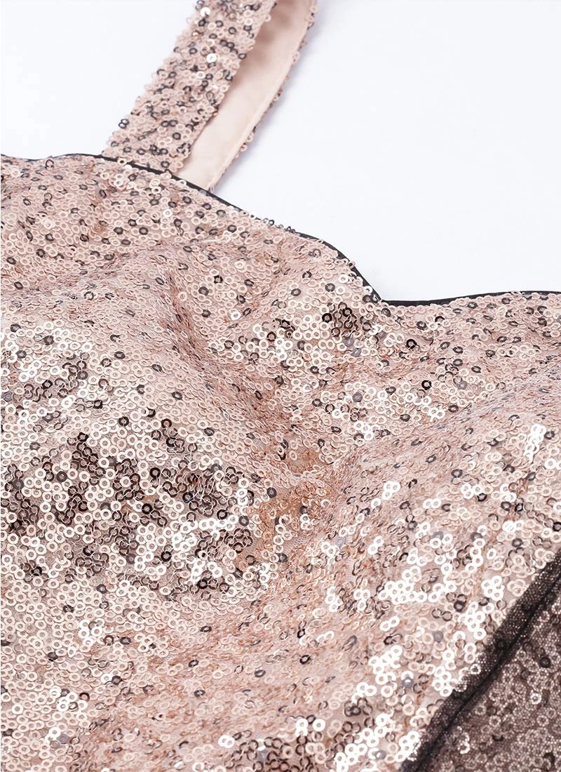 Presenting a black ombre sequins embroidered gown, features strap neckline both in front and back, strap sleeves,yoke until natural waist length, comes with black georgette medium flare until floor length and has back zip opening. It is paired up with a non detachable cape style dupatta attached to the sleeves. Mask only for shoot purposes.Refer the fabric image for true color of the dress. This dress is custom designed from fabric and custom stitched. Once sold cannot be returned.Designs, colors, and patterns on the actual product may slightly vary from designs shown in the image. Images are the only representative
