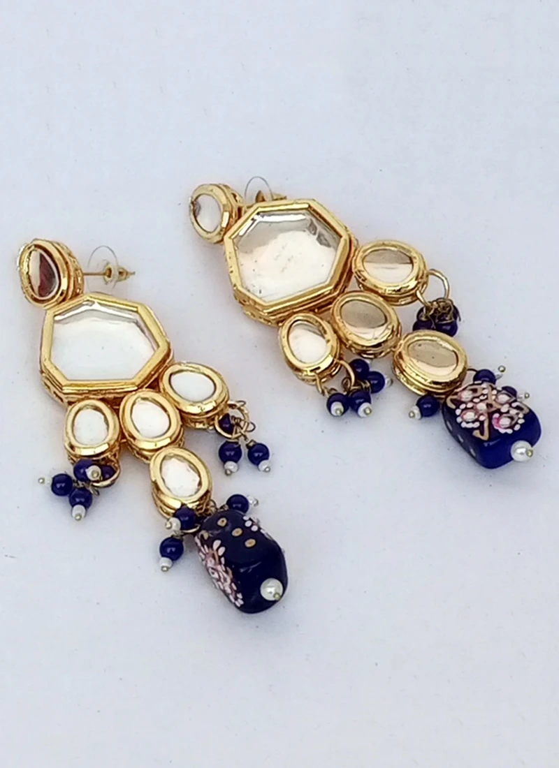 Blue Alloy Kundan Danglers A Stunning Fusion of Elegance and Tradition