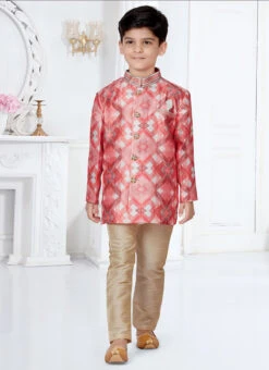Multicolor Jacquard Silk Printed Indowestern Sherwani Party Wear