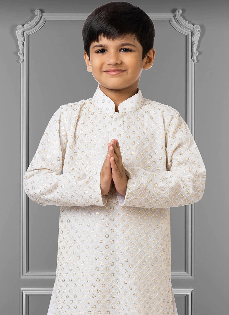 Be the first to review “Cream Georgette Embroidered Boys Kurta Pyjama Party Wear” Cancel reply