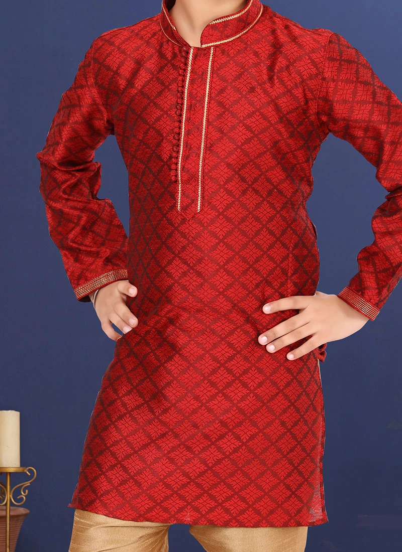 Be the first to review “Dark Red Blackberry Silk Jacquard Boys Kurta Pyjama” Cancel reply