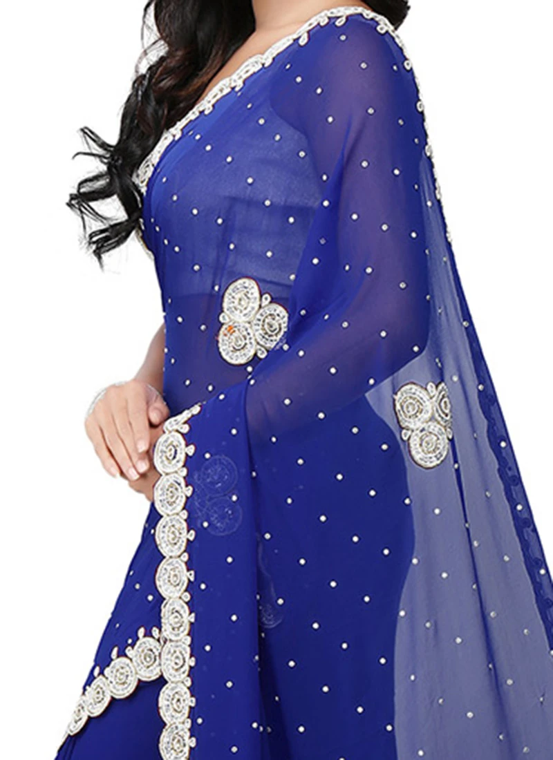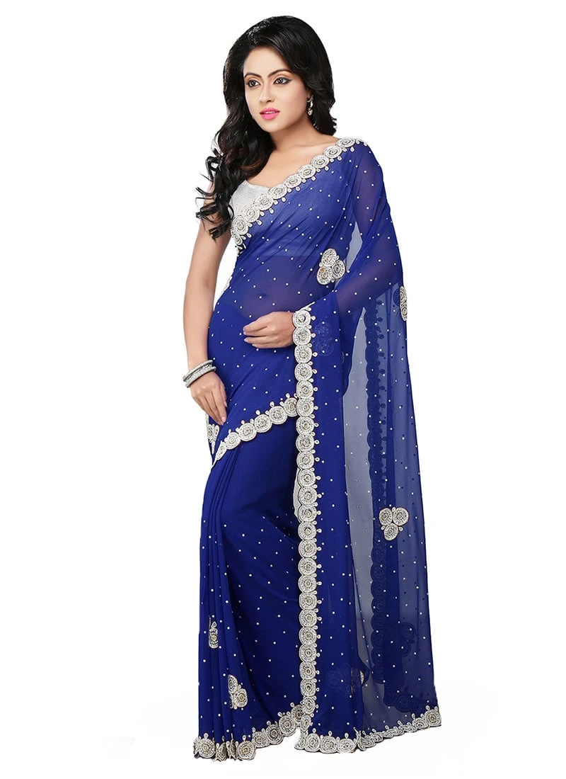 Comes with unstitched blouse fabric. To have the blouse stitched, please select the custom tailoring options. Blouses with elaborate patterns and colors are used for photo-shoot. Color and pattern of the blouse might not be as shown in the image.
