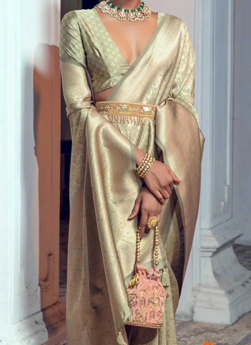 In summary the Dusty Green Art Silk Zari Saree is a masterpiece that captures the essence of Indian heritage and craftsmanship. Its rich colour intricate zari work and luxurious texture make it a musthave in every womans wardrobe. Embrace the tradition embrace the beauty and let this saree adorn you like a work of art.