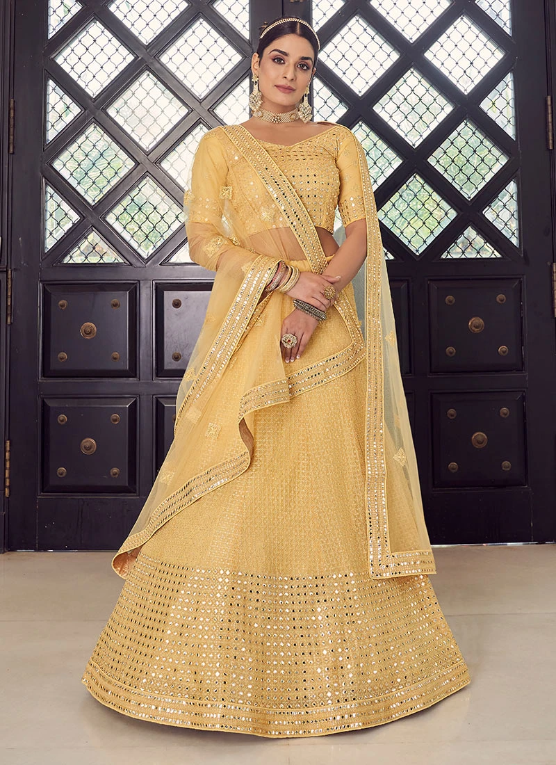 This product consists of semistitched lehenga, choli and dupatta fabric. This can be stitched using the custom tailoring options below. To buy semi-stitched fabric, just choose the unstitched option.