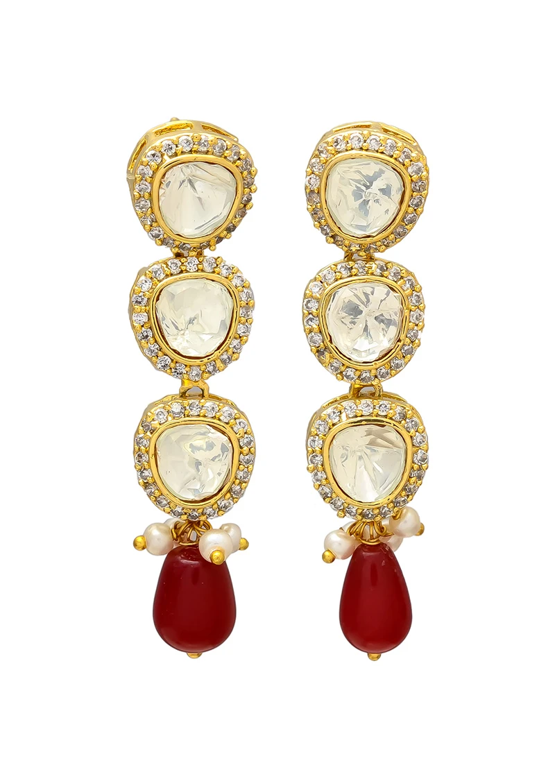 Unveil the allure of timeless elegance with our stunning Gold N Red Stones Alloy Danglers. we are committed to providing you with the finest fashion accessories and these exquisite danglers are a true testament to our dedication to sophistication style and impeccable craftsmanship. Our Gold N Red Stones Alloy Danglers are meticulously crafted from highquality alloy materials ensuring the perfect blend of durability and lightweight comfort. These danglers are designed to be worn all day or all night without any discomfort. These danglers feature an artistic design that seamlessly merges the opulence of gold with the captivating allure of red stones. The result is a pair of earrings that exude sophistication and charm effortlessly enhancing your fashion statement. The focal point of these danglers is the mesmerizing red stones carefully set within the gold framework. These stones gracefully capture and reflect light creating a captivating interplay of colors that will undoubtedly turn heads and spark conversations. Whether youre attending a formal gala a romantic dinner or a casual gathering with friends these danglers are the perfect accessory to elevate your look. Their versatile style complements a wide range of outfits from traditional ethnic attire to contemporary Western fashion. We understand the importance of a secure and comfortable closure. These danglers feature a reliable hook closure ensuring they stay securely in place throughout your day or evening. Searching for a thoughtful gift for a loved one Our Gold N Red Stones Alloy Danglers come beautifully packaged making them an ideal choice for birthdays anniversaries weddings or any special occasion. We firmly believe that luxury should be accessible to all and these Gold N Red Stones Alloy Danglers embody this philosophy. You can indulge in premium quality and exceptional design without exceeding your budget. Make a statement wherever you go with our Gold N Red Stones Alloy Danglers. Whether youre gracing a glamorous event or adding a touch of classic elegance to your everyday attire these earrings will make you shine like a true fashion icon. Dont miss the opportunity to own a piece of jewellery that seamlessly combines the opulence of gold with the allure of red stones. Elevate your jewellery collection today with these extraordinary danglers and embrace the radiant beauty of Gold N Red Stones.