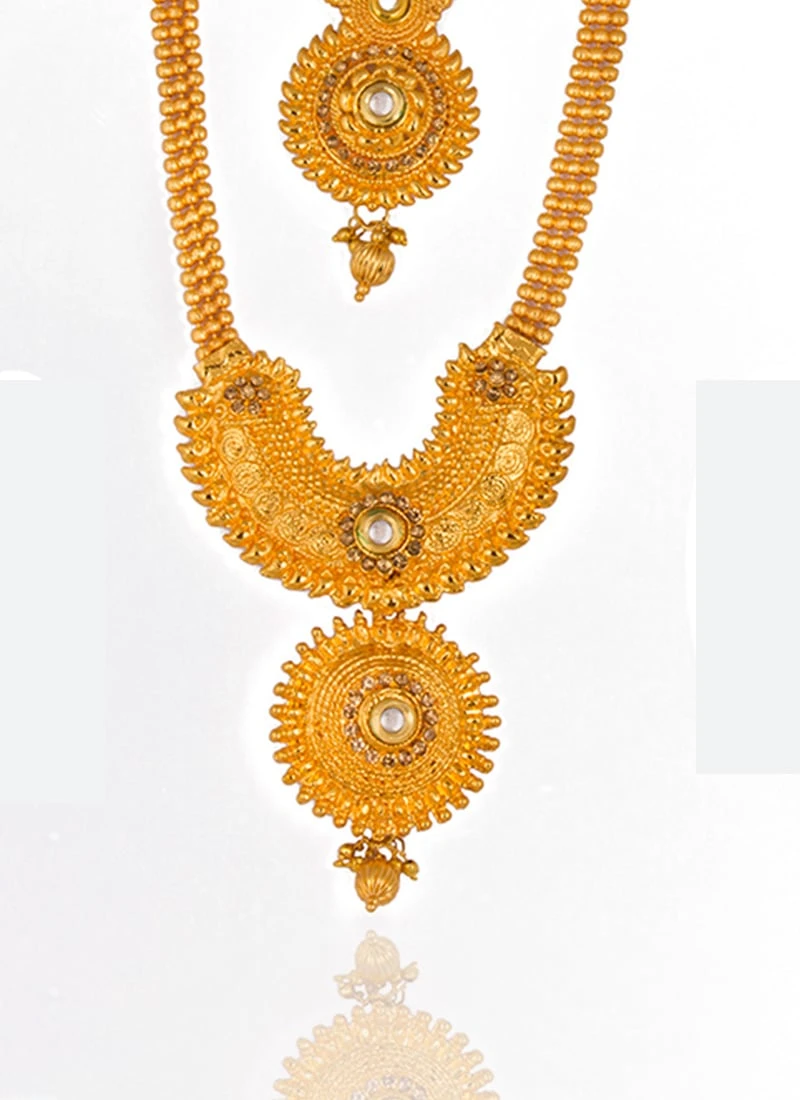 Note: The dimension of the actual product necklace weight is 125 gms, length is 30 cm,width is 5.5 cm. Earring length is 5.3 cm,width is 1.5 cm.