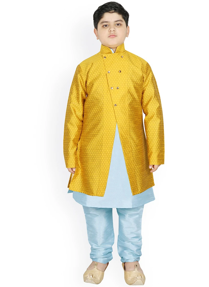 Be the first to review “Golden Mustard Dupion Silk Boys Kurta Pyjama Festive Wear” Cancel reply