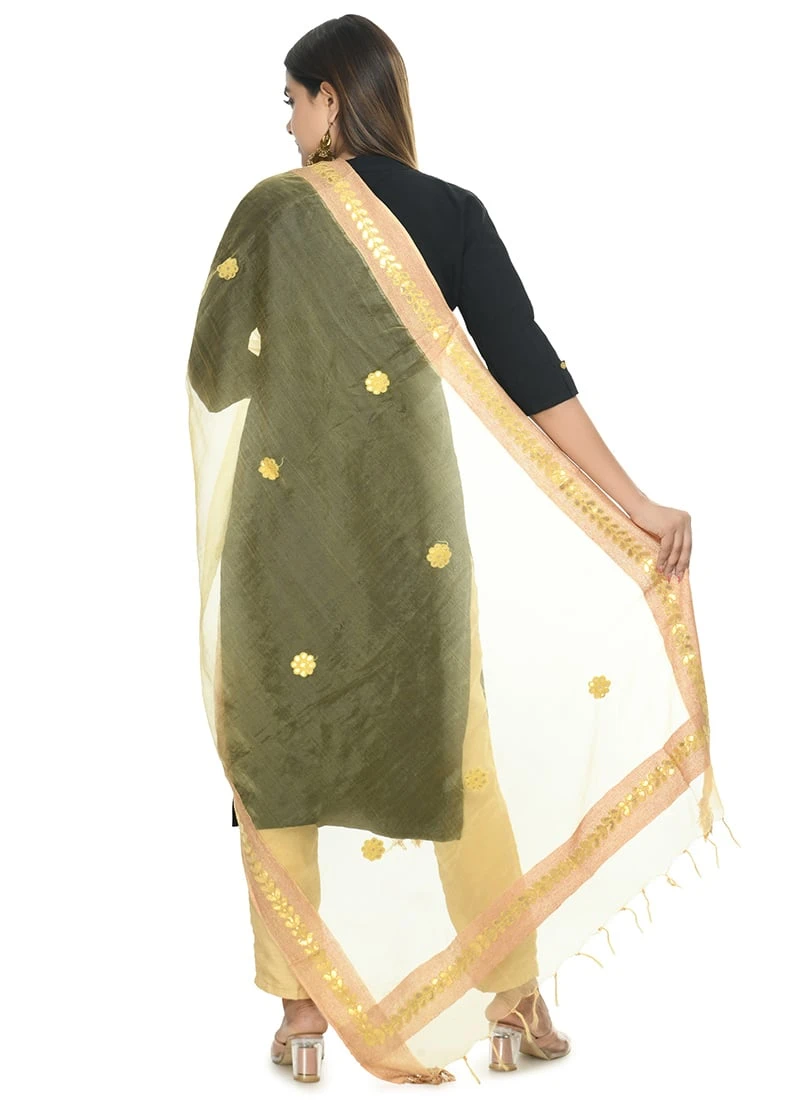 Be the sunshine in this golden color organza cotton dupatta with gota patti work looks chic and pretty.