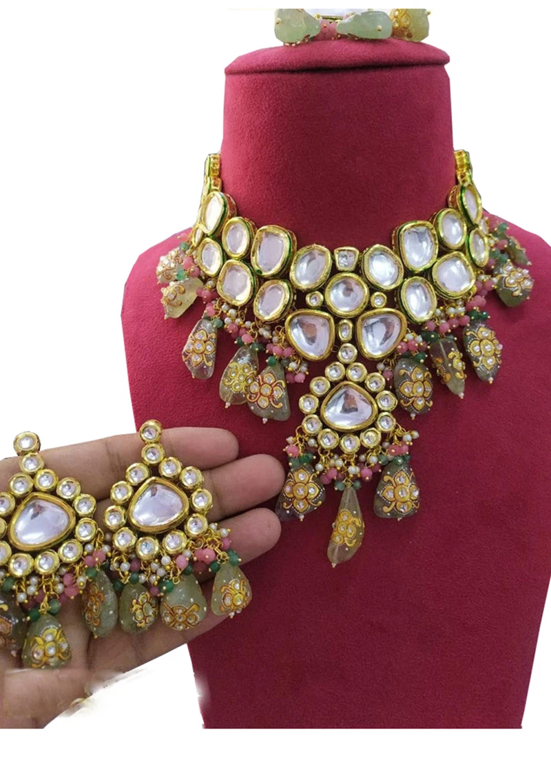 The dimension of the actual product necklace is 9 X 3 inches and approximate earring length is 2 inches and maangtika length is 6 inches.