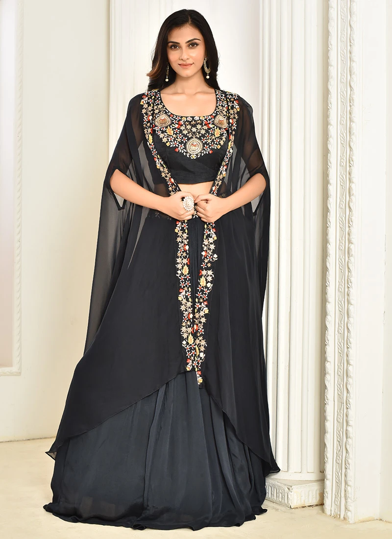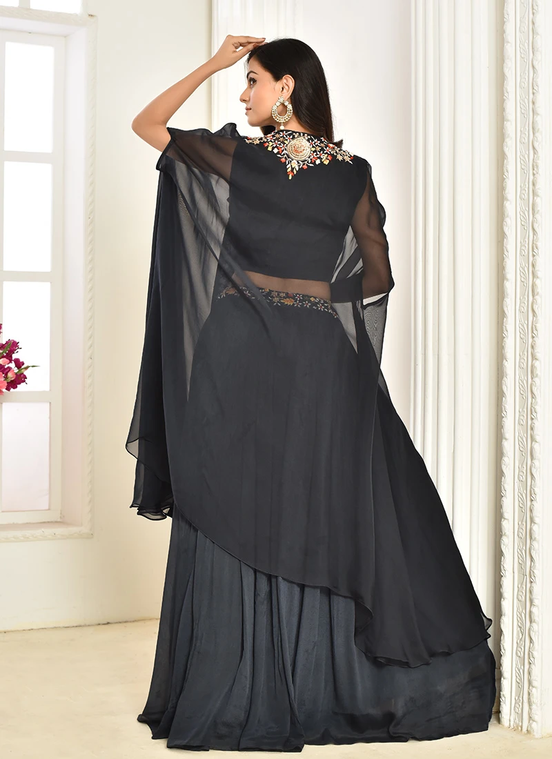 In the world of fashion there are garments that speak to the heart of elegance and timelessness. The Grey Pure Silk Hand Work Lehenga is one such masterpiece a stunning fusion of tradition and contemporary style designed to make every woman feel like royalty. This resplendent lehenga is a celebration of the enduring allure of Indian fashion exemplifying meticulous craftsmanship and understated beauty. Crafted from art silk a fabric known for its sumptuous sheen and gentle flowing texture the Grey Pure Silk Hand Work Lehenga offers a tactile experience that is both opulent and comfortable. The choice of a subtle grey hue adds a touch of sophistication to the attire. Grey symbolizing neutrality balance and versatility is an ideal choice for special occasions embodying a celebration of lifes elegance and grace. The silhouette of the Grey Pure Silk Hand Work Lehenga effortlessly blends traditional and modern design elements. It boasts an Aline cut with a fitted waist accentuating the natural curves of the wearer and a flowing skirt that imparts an ethereal quality to the ensemble. The lehengas design pays homage to the timeless elegance of Indian fashion ensuring versatility and timeless appeal. What distinguishes this lehenga is the intricate handiwork that adorns it. The skirt blouse and accompanying dupatta are adorned with meticulous handembroidered motifs and beadwork. These designs take inspiration from the rich tapestry of Indian culture featuring intricate florals paisleys and geometric patterns. Each motif reflects the skill and attention to detail of the artisans who passionately craft this masterpiece. The accompanying blouse is also adorned with the same handembroidered work creating a seamless and elegant look that harmonizes with the lehengas design. The synergy between the intricate embroidery and beadwork highlights the craftsmanship and precision of the artisans resulting in a lehenga that is both classic and contemporary. It is a versatile choice for a range of events from weddings and receptions to formal gatherings. Wearing the Grey Pure Silk Hand Work Lehenga is not just about looking elegant it is about feeling comfortable and confident. The pure silk fabric drapes gracefully and feels soft against the skin ensuring freedom of movement. The ensemble typically includes a matching blouse and a sheer dupatta providing a complete and regal look. To complete the regal look pair this lehenga with traditional Indian jewelry such as chandelier earrings a statement necklace and bangles. The sheer dupatta can be draped in various styles adding an additional layer of elegance to the attire. Footwear options can range from heeled sandals for a modern touch to delicate juttis for a hint of tradition. In summary the Grey Pure Silk Hand Work Lehenga is a symbol of timeless beauty and grace. Its subtle grey hue intricate handiwork and comfortable fit make it an ideal choice for women who want to make a statement at special occasions. This lehenga is more than just clothing it is a work of art that reflects the rich heritage and elegance of Indian fashion. When you wear the Grey Pure Silk Hand Work Lehenga you are not just wearing an outfit you are adorning a piece of history and culture that has been masterfully reimagined for the modern woman. It is a tribute to tradition and contemporary design converging in the world of fashion where every stitch and motif embodies understated elegance and grandeur a timeless symbol of grace.