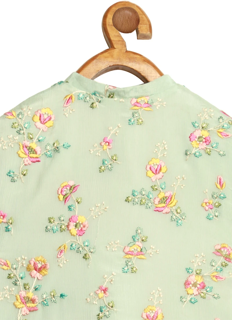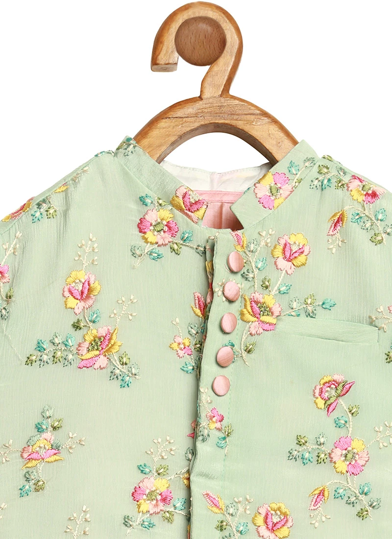 Pista Green Cotton Kids Boys Indowestern Sherwani Festive Wear