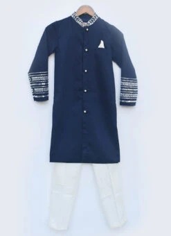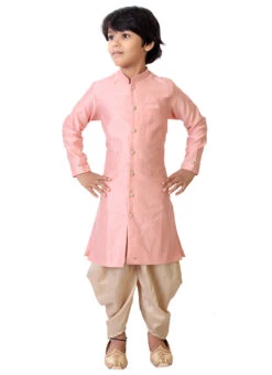 Pastel Blue Silk Printed Kids Boys Classic Sherwani Party Wear