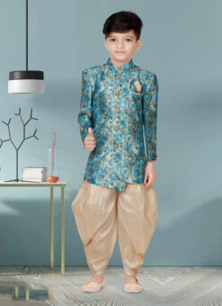 Blue Jacquard Silk Printed Work Indowestern Sherwani Party Wear