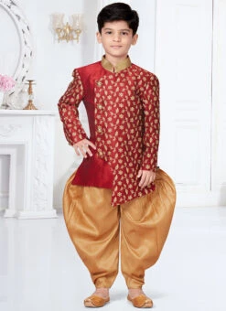 Navy Blue And Maroon Art Silk Jacquard Indowestern Sherwani Party Wear