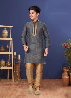 Teal Green Art Silk Embroidered Classic Sherwani Wedding Wear