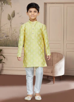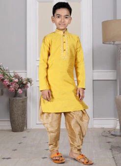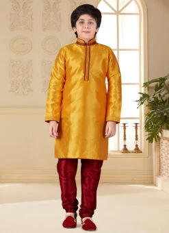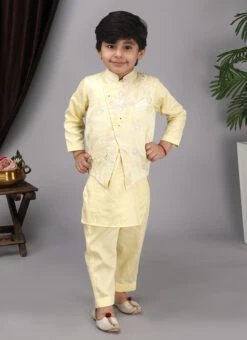 Yellow Art Silk Embroidered Indowestern Sherwani For Boys Festive Wear