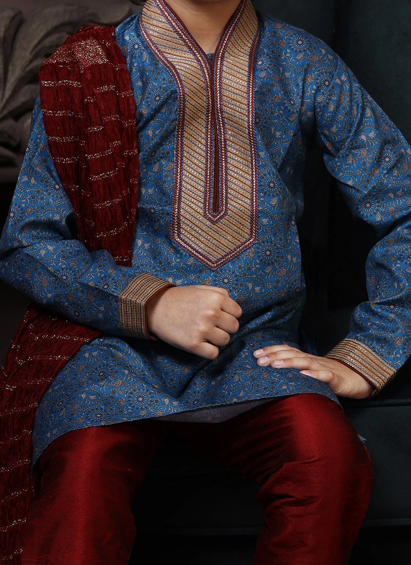 Multicolor Jacquard Silk Printed Indowestern Sherwani Party Wear