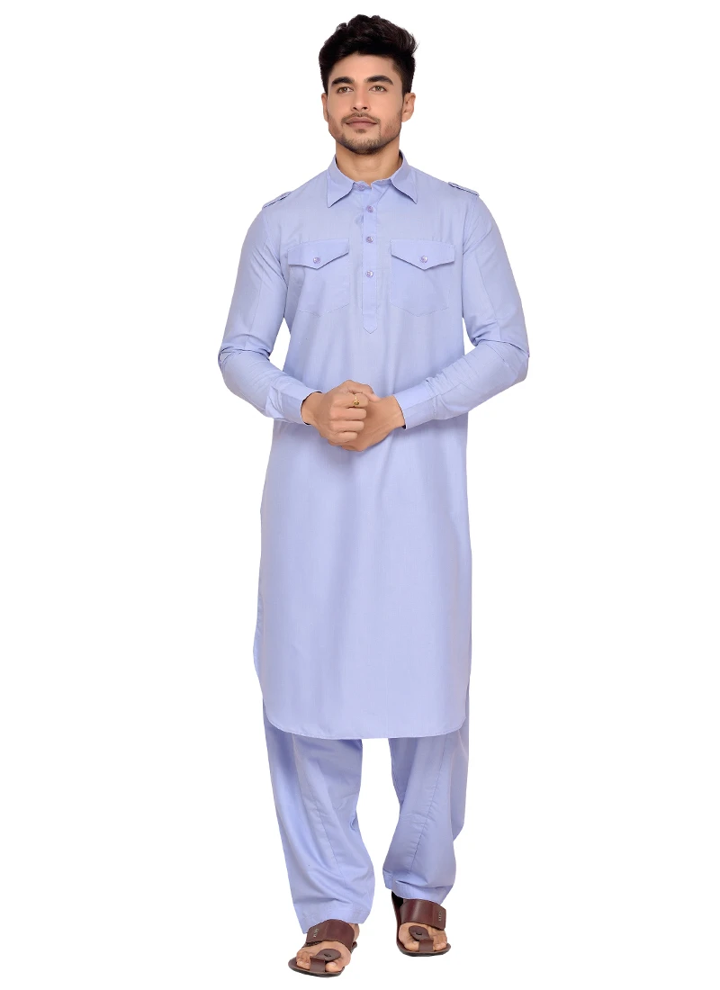 Lavender art silk plain structred pathani set with side square pockets on it. Comes with matching bottom.