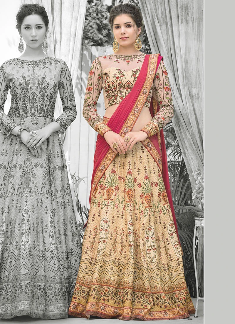 Comes with unstitched lehenga, choli and dupatta fabric. To have it stitched, please select the custom tailoring options. Lehenga with elaborate patterns and colors are used for photo-shoot. Color and pattern of the lehenga might not be as shown in the image.