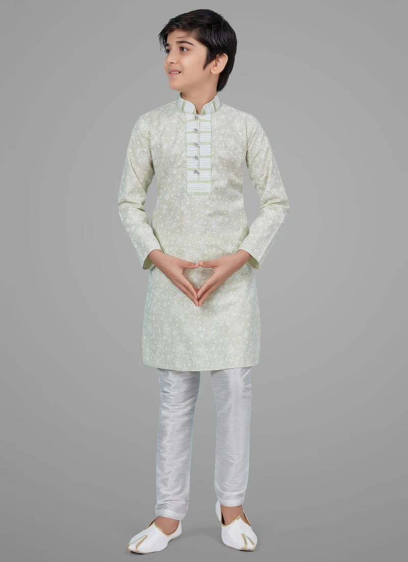 Be the first to review “Light Pista Green Printed Cotton Silk Boys Kurta Pyjama” Cancel reply