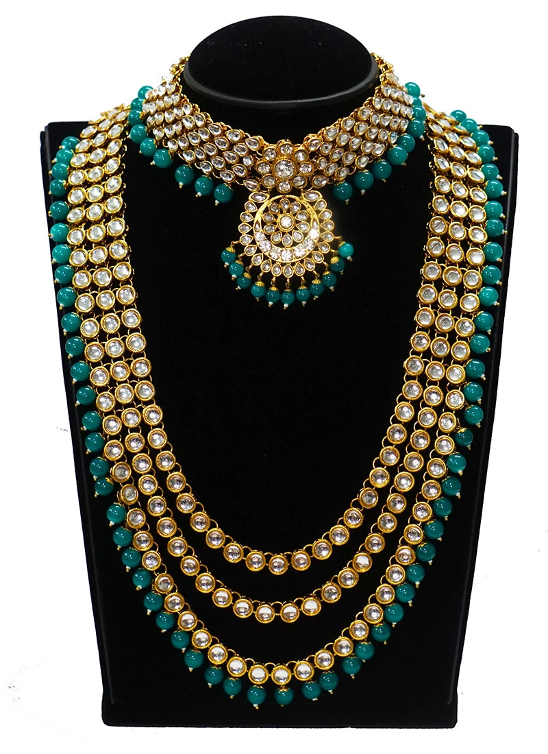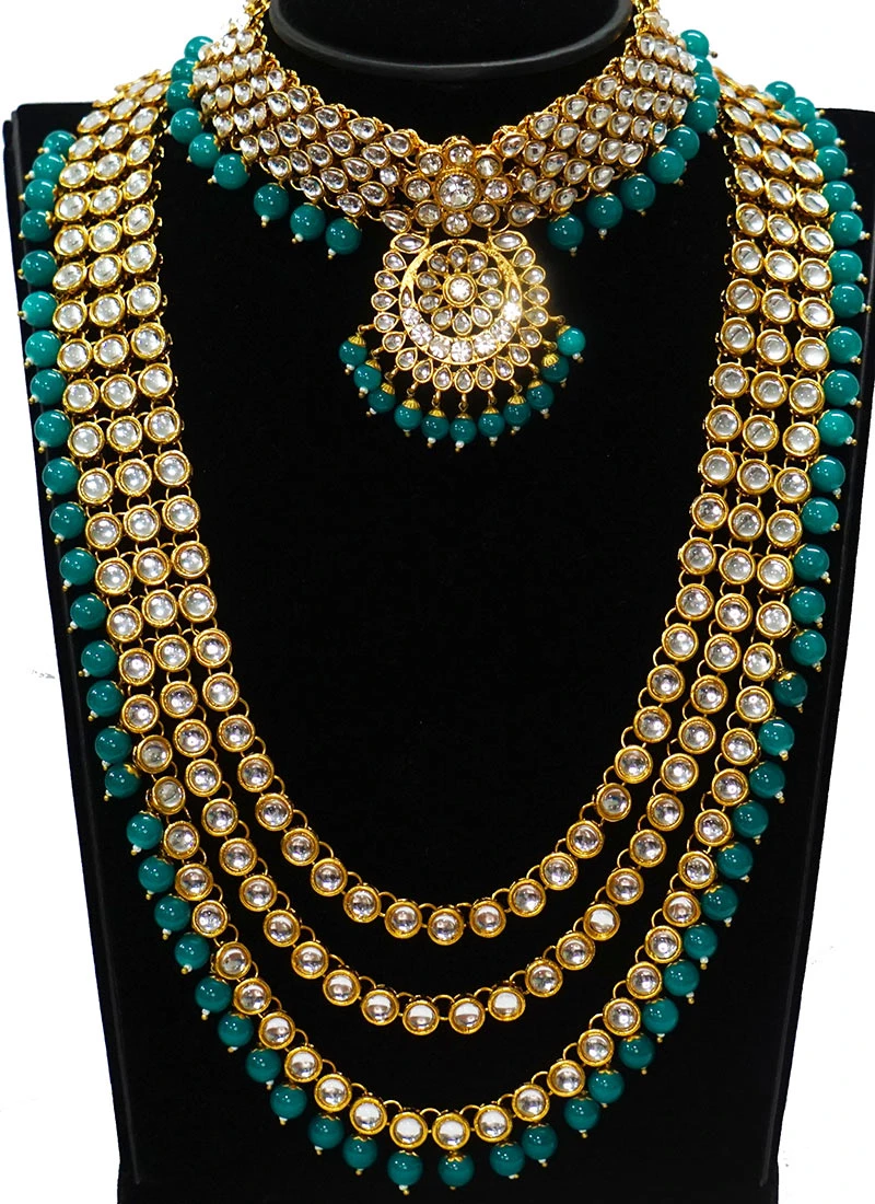 The Maharani Gold Plated Bridal Set is a magnificent and opulent ensemble that befits royalty. Crafted with unparalleled artistry and adorned with resplendent gold plating this jewelry set becomes a majestic symbol of regal charm and timeless beauty fit for a queen on her most special day. At the heart of the Maharani Gold Plated Bridal Set lies a breathtaking necklace that commands attention with its grandeur. The necklaces design is a fusion of traditional motifs and contemporary elegance creating a regal masterpiece that exudes a captivating allure. The entire set including the necklace earrings and mang tikka is lavishly coated with gold plating. The radiant gold hue symbolizes prosperity luxury and auspiciousness making it the perfect choice for a brides momentous occasion. The lustrous gold plating illuminates the jewelry set casting a dazzling glow that complements the brides innate radiance. The Maharani Gold Plated Bridal Set showcases intricate artistry meticulously detailing every aspect of the jewelry. The necklaces pendant is adorned with filigree work and precious gemstones arranged in a symphony of splendor that captures the essence of a royal treasure. The earrings and mang tikka are crafted with equal precision featuring delicate patterns and gemstone accents that mirror the necklaces opulence. The Maharani Gold Plated Bridal Set pays homage to a rich royal heritage drawing inspiration from the adornments of ancient queens and princesses. The jewelry set embodies the grace and majesty of royalty infusing the brides ensemble with a sense of timeless grandeur. While designed for a brides special day the Maharani Gold Plated Bridal Set is a versatile treasure that can be cherished and worn on other momentous occasions. Its significance extends beyond the wedding day becoming a treasured heirloom that carries the memories of the brides most cherished moments. The Maharani Gold Plated Bridal Set exemplifies unparalleled craftsmanship with each detail meticulously attended to. The filigree work gemstone settings and overall design are a testament to the skill and dedication of master artisans who have honed their craft to perfection. As a bridal accessory the Maharani Gold Plated Bridal Set becomes the embodiment of majestic grace and timeless allure. Its grandeur and intricate artistry complement the brides attire elevating her beauty and making her feel like a true queen on her special day. The Maharani Gold Plated Bridal Set becomes a testament to the power of love and the enduring traditions that bind two souls in matrimony. It serves as a symbol of unity and commitment representing the start of a new chapter in the brides life. The Maharani Gold Plated Bridal Set is a resplendent expression of regal charm and timeless allure. With its grand design opulent gold plating and intricate artistry this jewelry set becomes a majestic adornment for a brides special day. As it graces the bride with its radiant presence it becomes a dazzling symbol of royal heritage and enduring love leaving a lasting impression on all who witness its regal splendor.