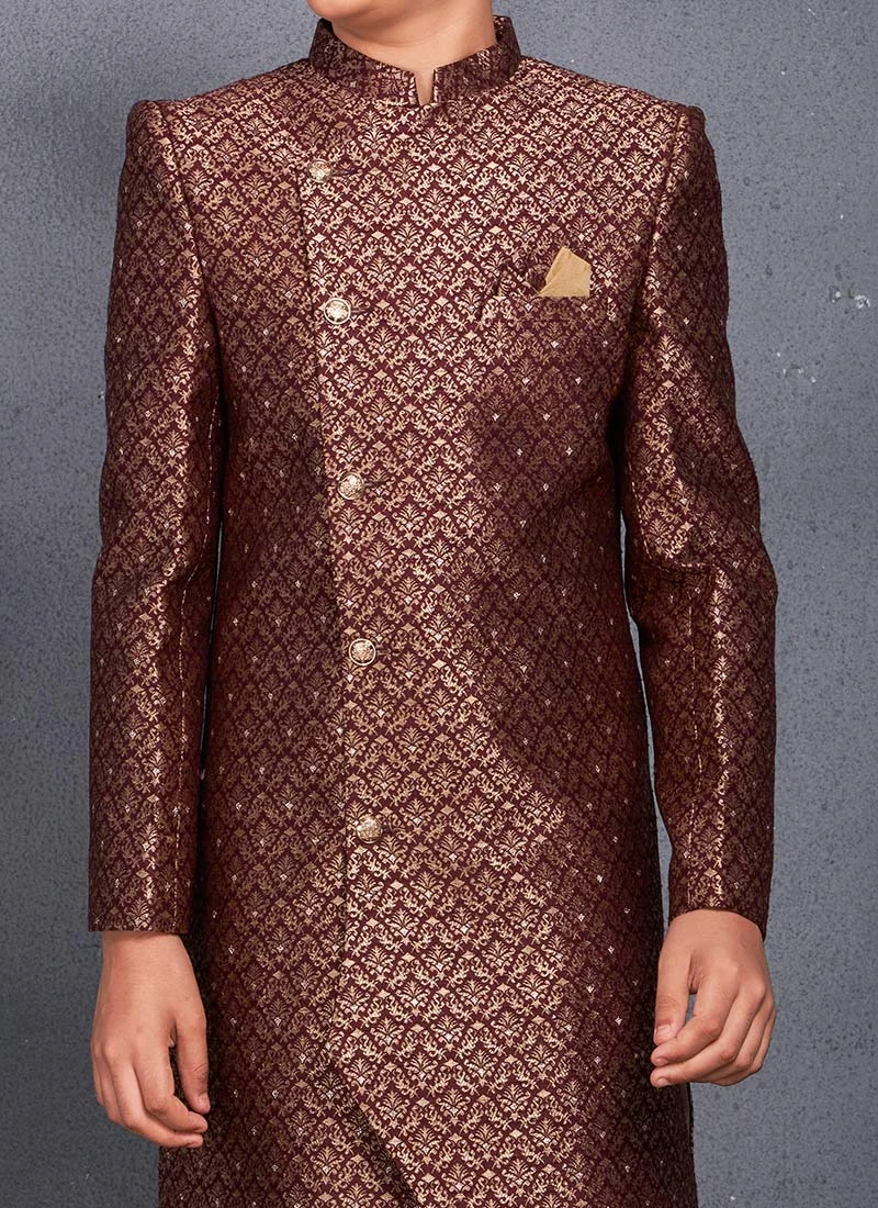 Be the first to review “Maroon Banarasi Brocade Classic Sherwani Wedding Wear” Cancel reply