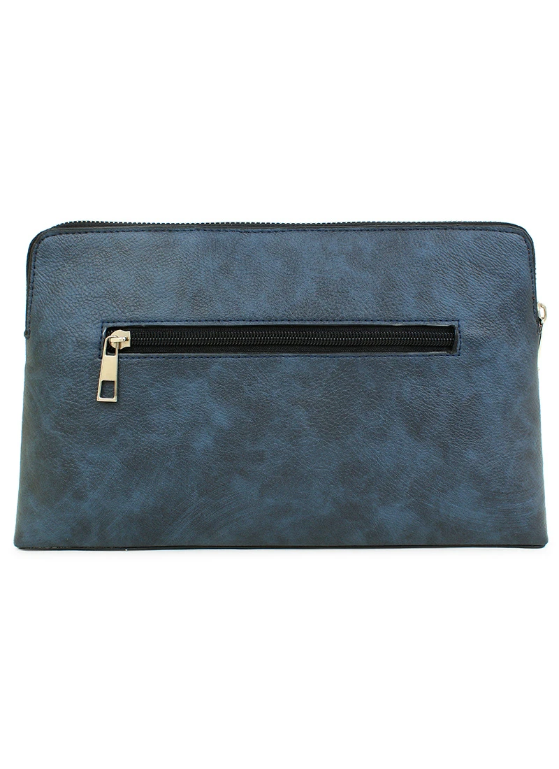Navy Blue polyster clutch with plain work and comes with zipper closure.