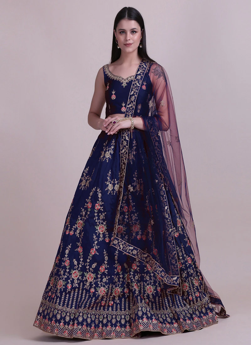 This product consists of semistitched blouse, lehenga and dupatta fabric. This can be stitched using the custom tailoring options below. To buy semi-stitched fabric, just choose the unstitched option.