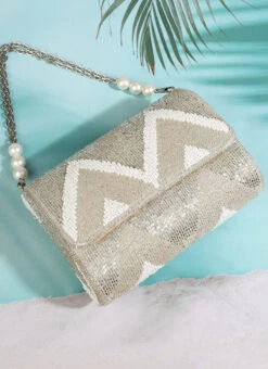 The olive green designer clutch the outer is made up of jute and inner is cotton fabric with zipper type.
