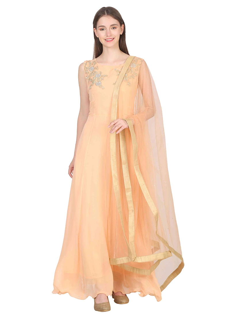 Be the first to review “Peach Georgette Embroidery Anarkali Suit Party Wear” Cancel reply