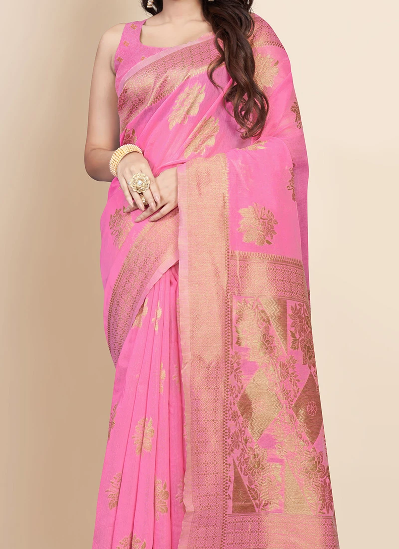 In a world where fashion trends come and go the Pink Art Silk Cotton Zari Sari remains a timeless masterpiece. Its blend of art silk and cotton stunning pink colour intricate zari work and versatility make it a wardrobe essential for every woman who appreciates the art of dressing. Whether youre attending a grand celebration or a casual gathering this saree will ensure you radiate elegance and charm making you the centre of attention wherever you go. Embrace the beauty and tradition of Indian textiles with the Pink Art Silk Cotton Zari Sari and let it be a testament to your impeccable taste and style.
