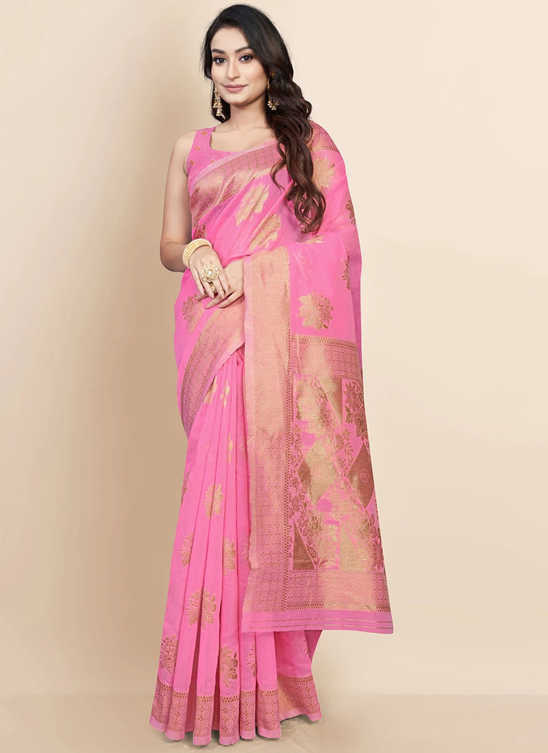 In the world of fashion few garments can rival the timeless allure of a traditional Indian saree. Among the myriad options available the Pink Art Silk Cotton Zari Sari stands out as a masterpiece of elegance and craftsmanship. This exquisite saree seamlessly combines the rich heritage of Indian textiles with a contemporary touch making it a versatile choice for various occasions.