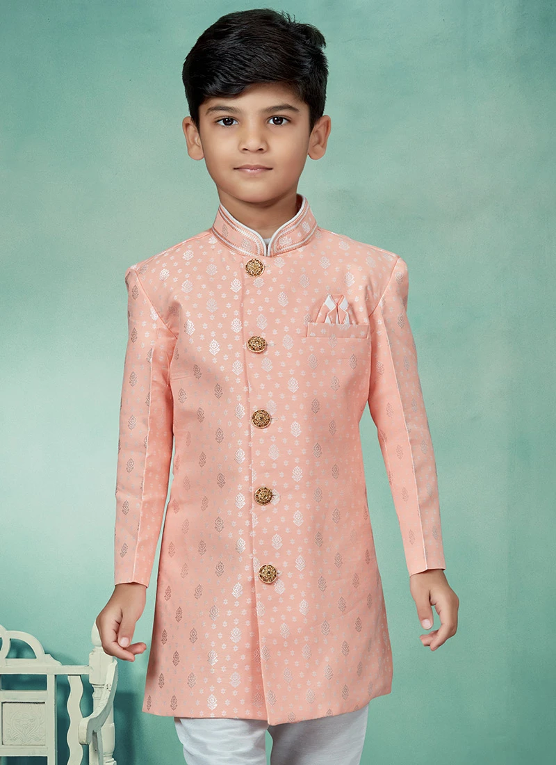 Be the first to review “Pink Banarasi Silk Jacquard Indowestern Sherwani Party Wear” Cancel reply