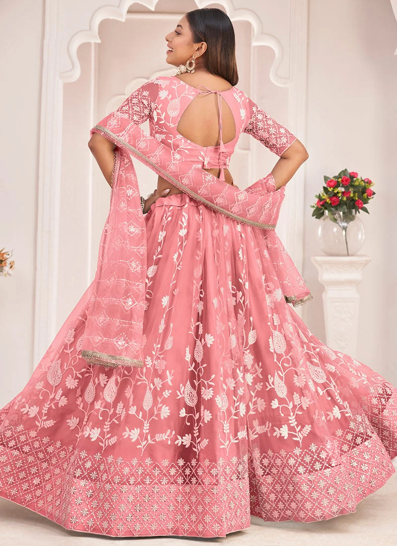 Comes with semi -stitched lehenga, un stitched choli and dupatta fabric. To have it stitched, please select the custom tailoring options. Lehenga with elaborate patterns and colors are used for photo-shoot. Color and pattern of the lehenga might not be as shown in the image.