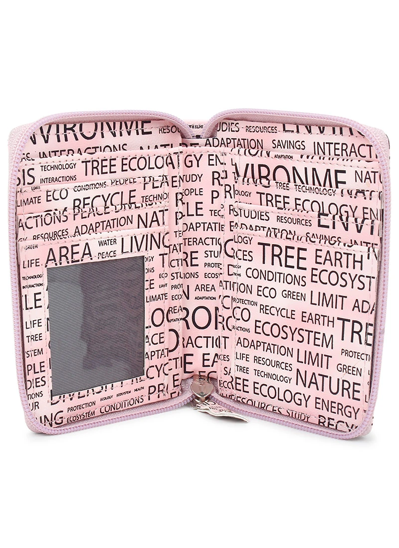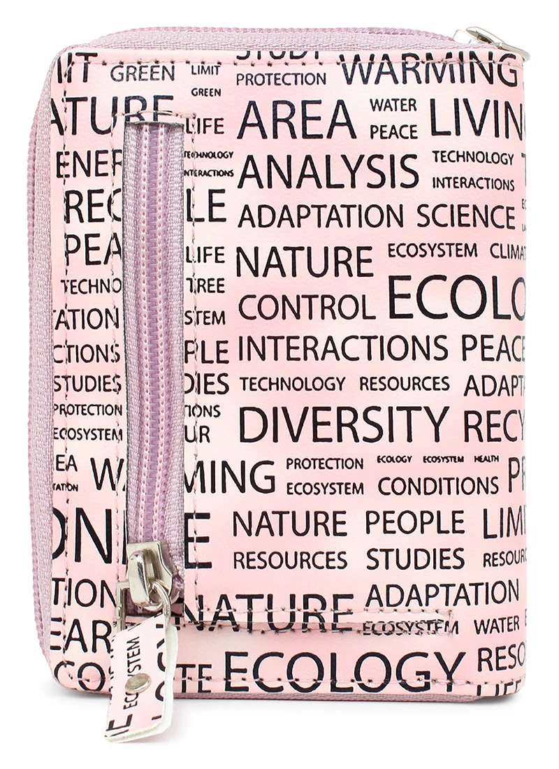 The designer pink polyster clutch with some designs and zipper closure.