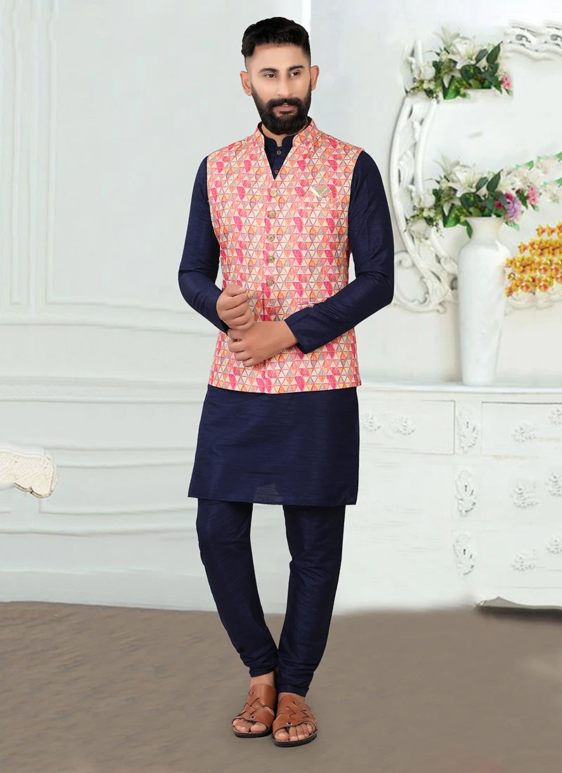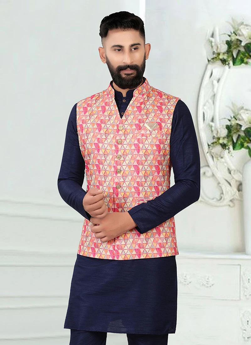 Look amazing with the attachment of pink rayon nehru jacket crafted with mandarin collar neck and sleeveless enriched with digital printed work is representing royalty in itself.