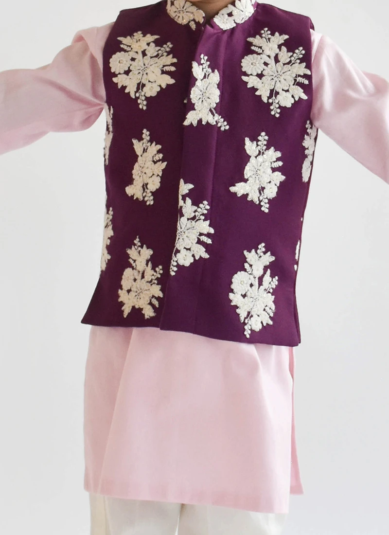 Be the first to review “Purple Cotton Silk Embroidery Nehru Jacket” Cancel reply