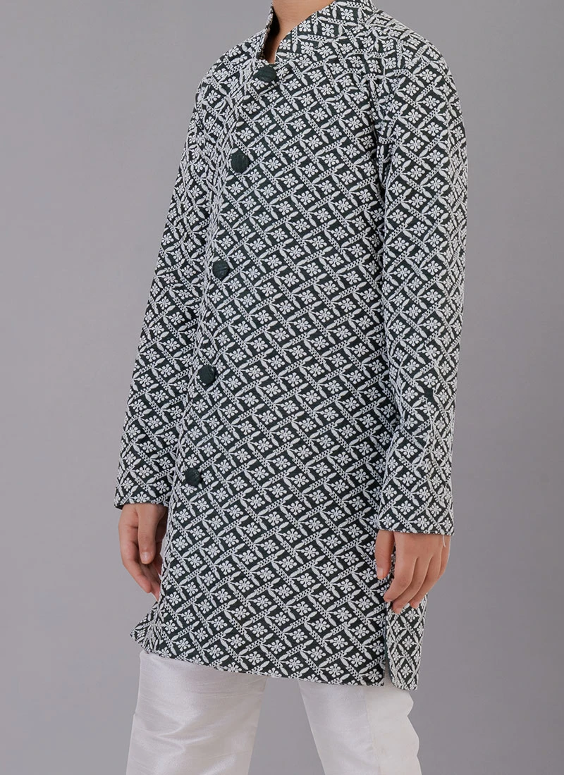 Pista Green Cotton Kids Boys Indowestern Sherwani Festive Wear