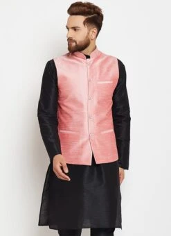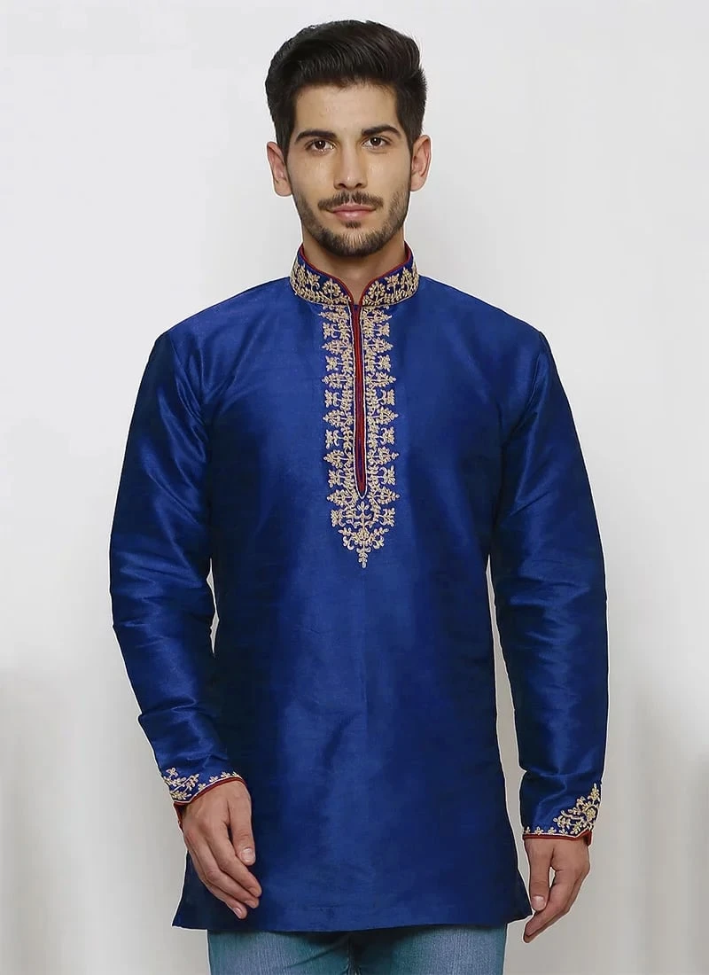 Royal Blue art silk kurta with embroidered floral patterns on the kurta.