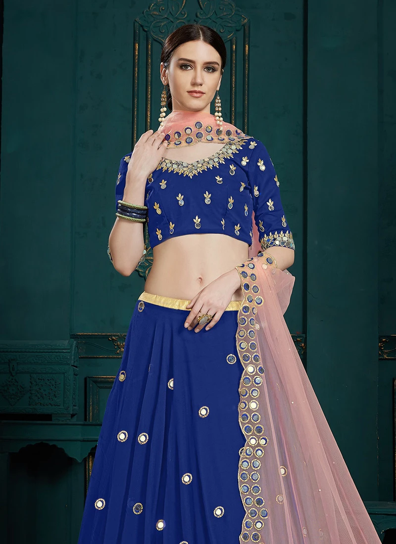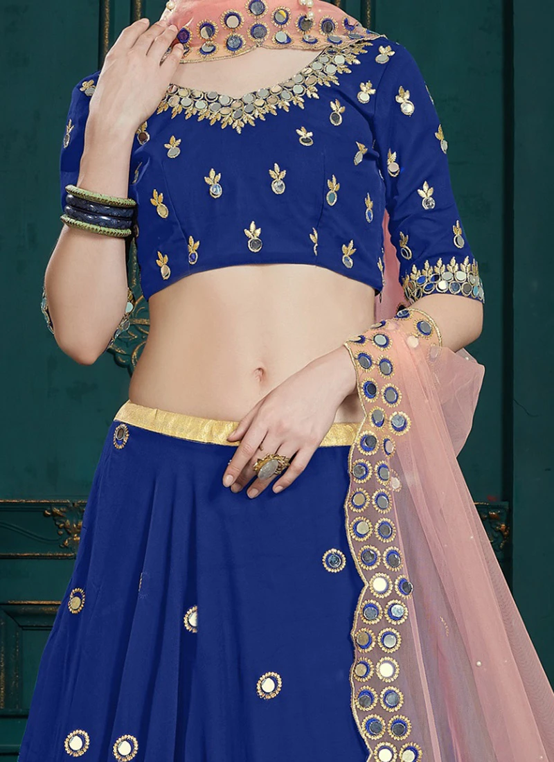 This product consists of semistitched lehenga, choli and dupatta fabric. This can be stitched using the custom tailoring options below. To buy semi-stitched fabric, just choose the unstitched option.