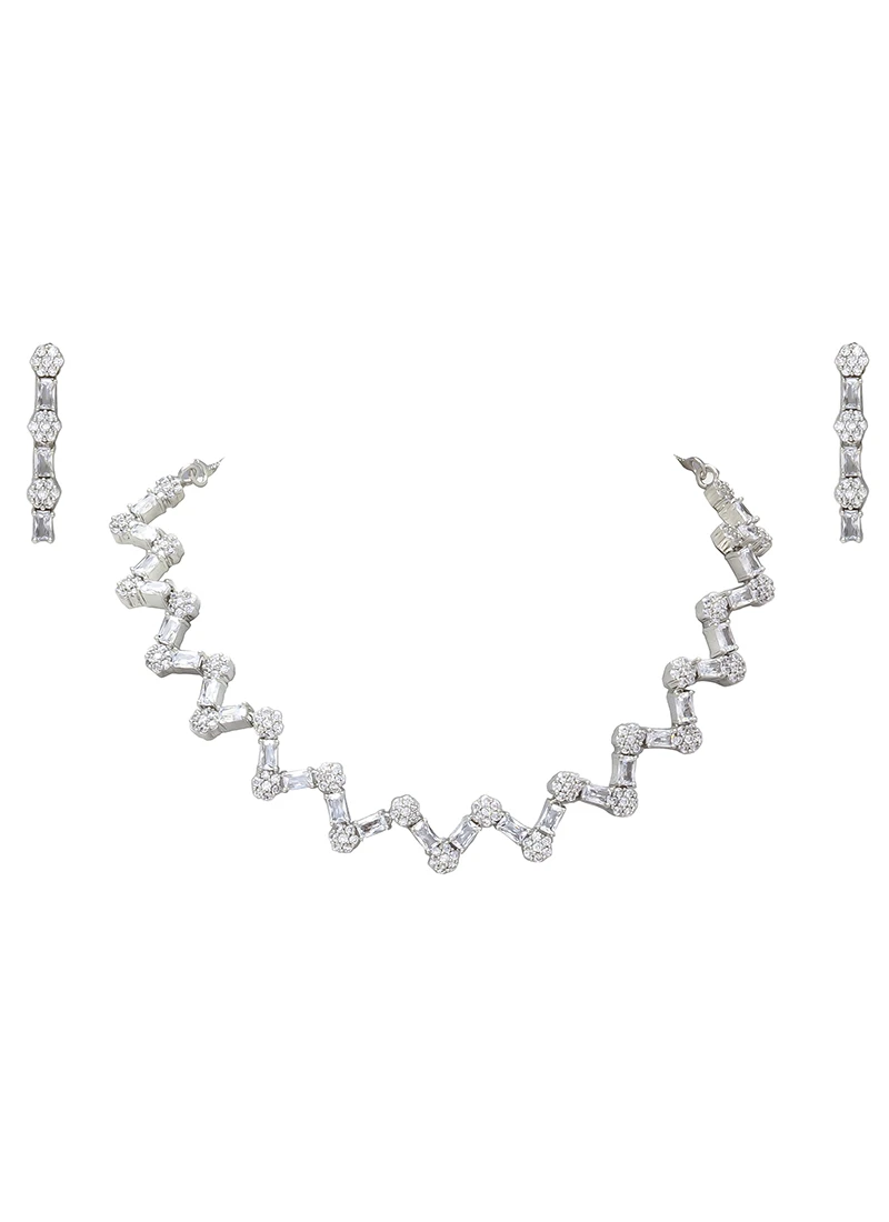 In summary the Silver White Polish American Diamond Necklace Set is a masterpiece of jewellery design. Its combination of highquality silver brilliant American diamonds and exquisite craftsmanship makes it a musthave accessory for any woman who appreciates the finer things in life. Make a statement and exude confidence with this stunning necklace set that captures the essence of timeless elegance.