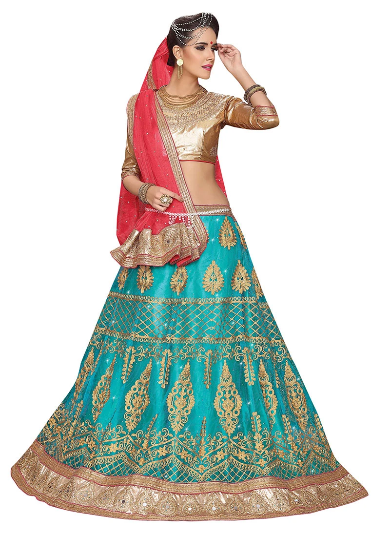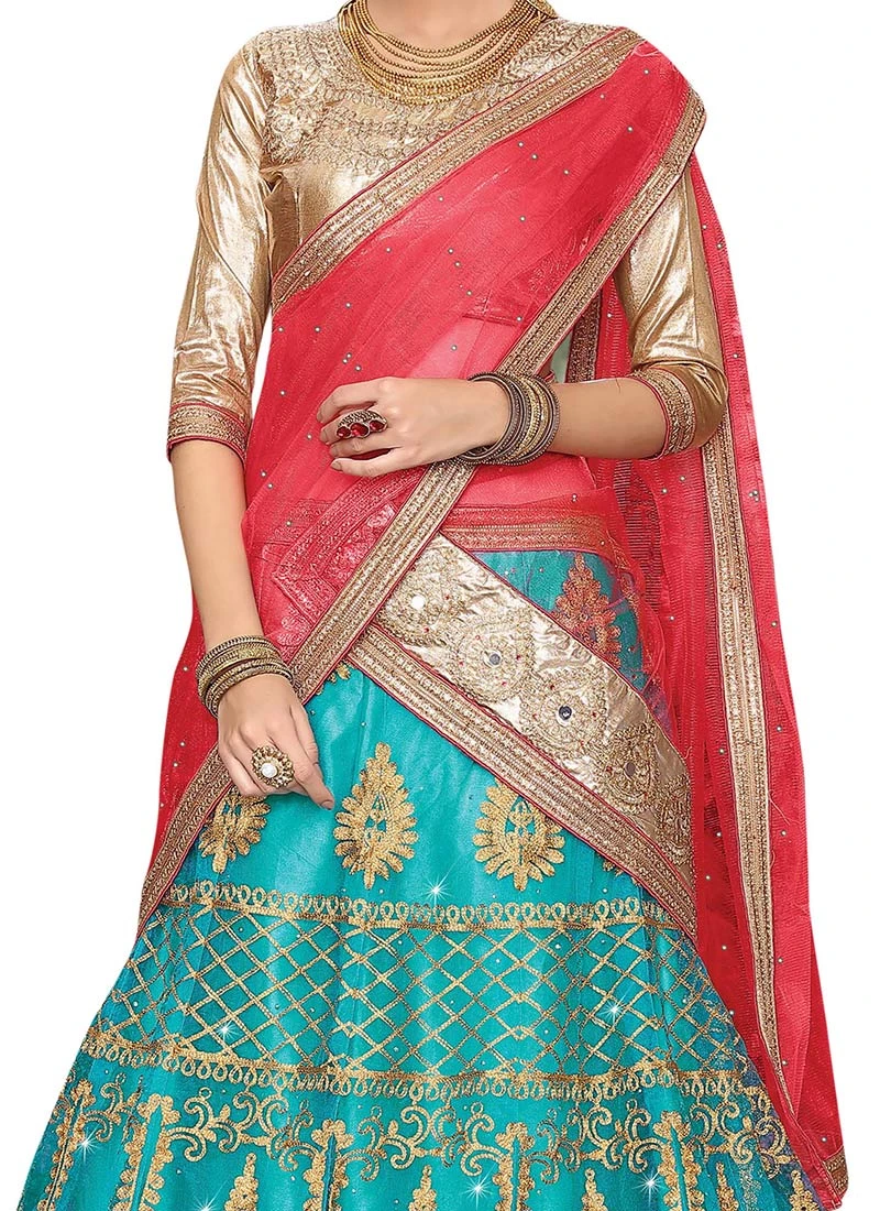 This product consists of semistitched blouse, lehenga and dupatta fabric. This can be stitched using the custom tailoring options below. To buy semi-stitched fabric, just choose the unstitched option.