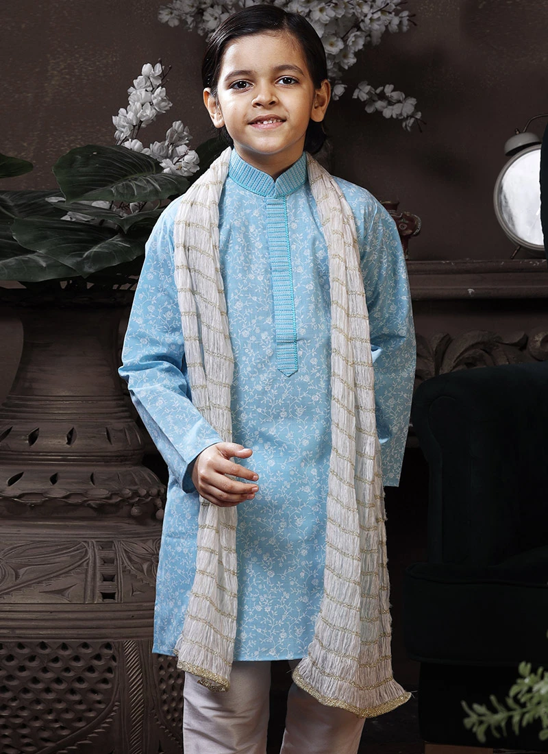 Pista Green Cotton Kids Boys Indowestern Sherwani Festive Wear