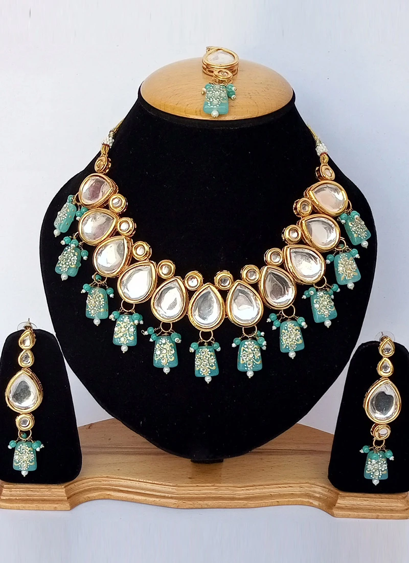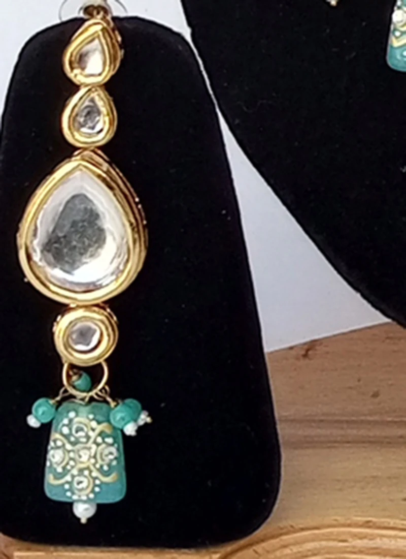 Note:The necklace size is 8 X 1 inches, earring is 2 inch and mangtikka is 6 inch.