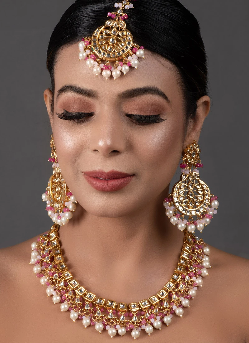 Note:The necklace length is 32 inch, width is 1.5 inch and earring length is 4 inch and width is 1.7 inch and mangtikka length is 7.2 inch, width is 2 inch.
