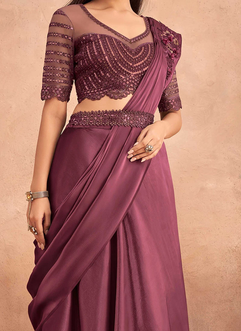 Comes with unstitched blouse fabric. To have the blouse stitched, please select the custom tailoring options. Blouses with elaborate patterns and colors are used for photo-shoot. Color and pattern of the blouse might not be as shown in the image.