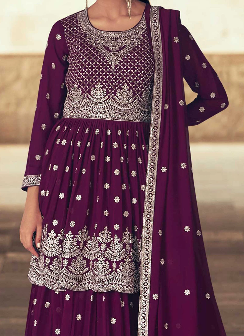 Whether youre the bride looking for a striking outfit for your wedding ceremony or a guest attending a grand celebration the Wine Faux Georgette Embroidered ALine Lehenga is a true embodiment of timeless beauty and sophistication. Its a testament to the artistry of Indian craftsmanship and the allure of traditional fashion making it a cherished addition to your wardrobe that will stand the test of time. With this enchanting lehenga youll be the centre of attention radiating beauty grace and confidence on your special day.