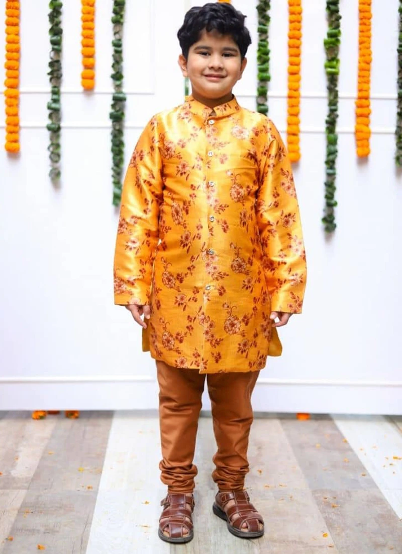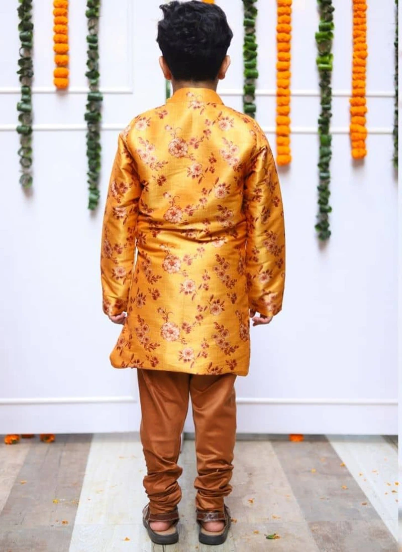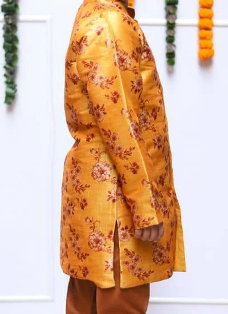 Be the first to review “Yellow Silk Printed Kids Boys Classic Sherwani Party Wear” Cancel reply